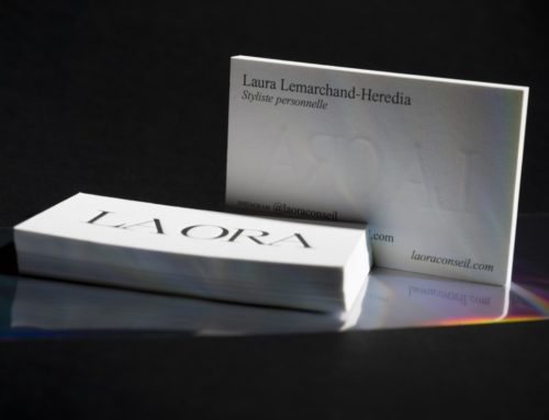 Cartes de visites moderne épurée pour designer – Contre collage duplex – Colorplan Pale Grey 540g – Double marquge à chaud Blanc et Noir brillant en débossage