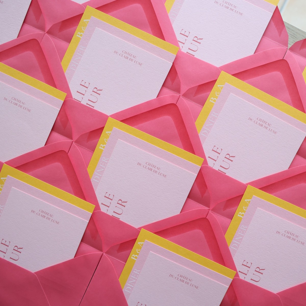 Faire-part de mariage avec illustration pochette sur mesure impression prénoms en Letterpress marron – Carton programme – Papier pur coton 350g – Colorplan Mist 350g